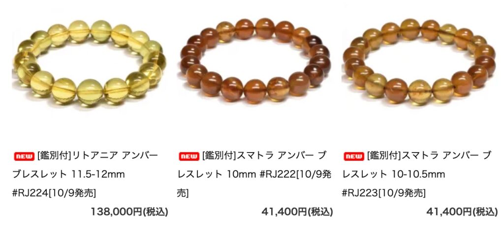 今回のブレスレットは、すべて「天然こはく」の証明が取れていますので、安心してお持ちいただけますよ。