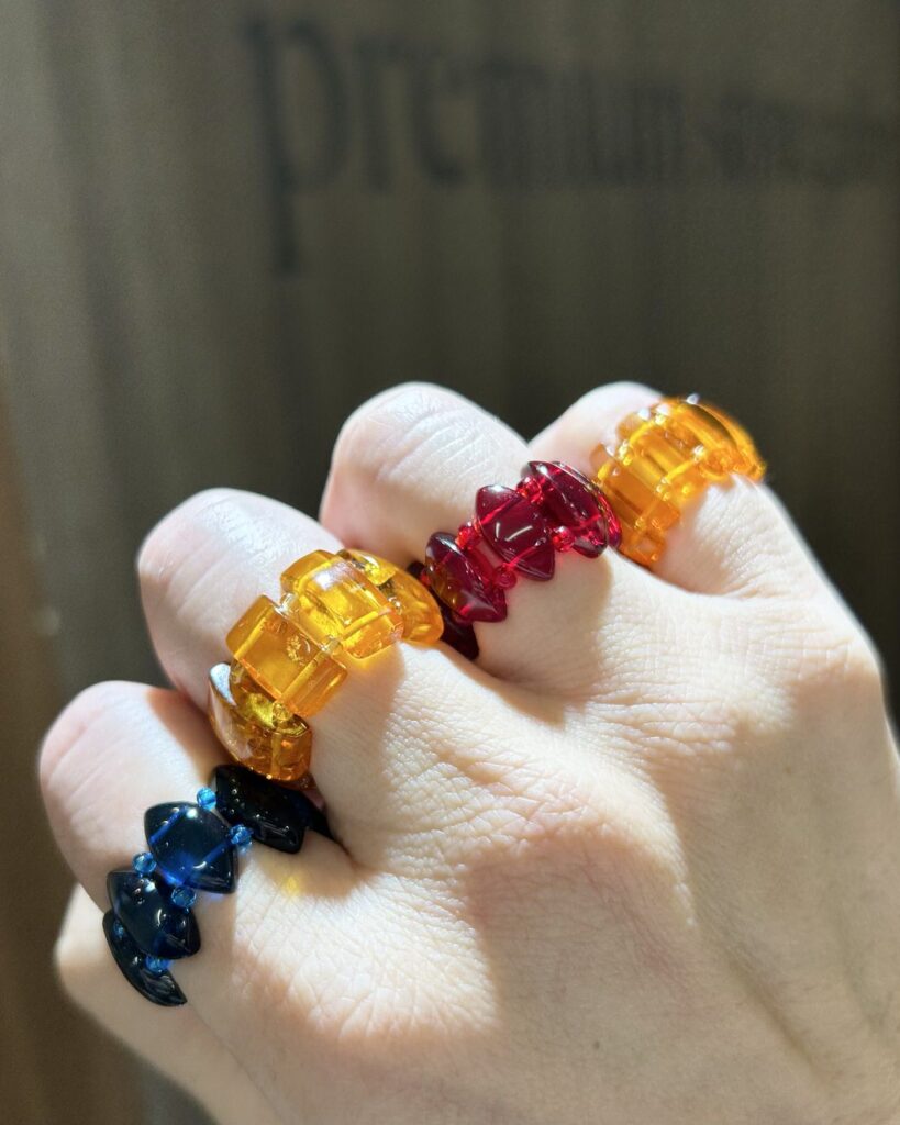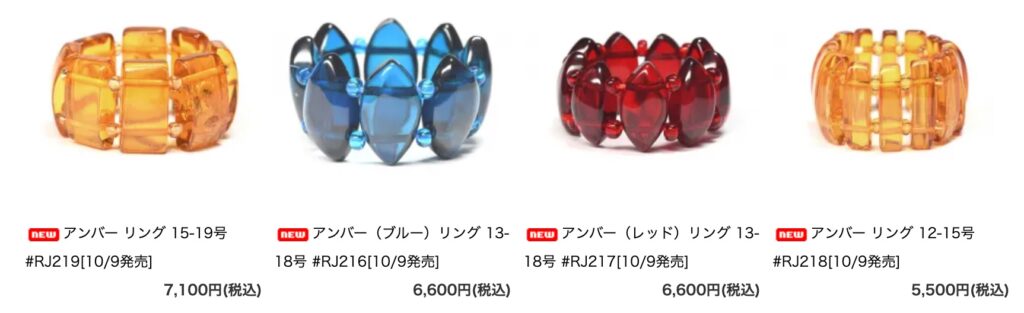 最後にご紹介するのは、リトニアアンバーで作ったビーズのリングです。カラーは3色。