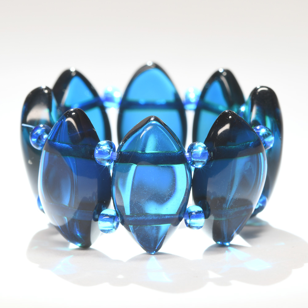 「ブルーアンバー」と呼ばれるアンバーにはニ種類あります。ひとつはUVライトで青く蛍光する「蛍光性ブルーアンバー」、もうひとつは、サファイアブルーに染められた「ブルー(カラー)アンバー」です。蛍光性ブルーアンバーは希少で高価ですね。