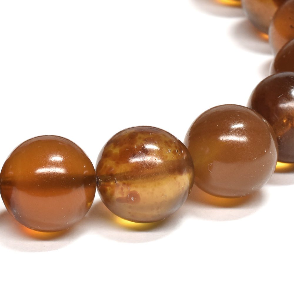 インドネシアのスマトラ島で採れる褐色のアンバー。内包物やにごりが多い傾向のアンバーですけれども、今回の品は異物が少なくキレイなビーズが揃っています。