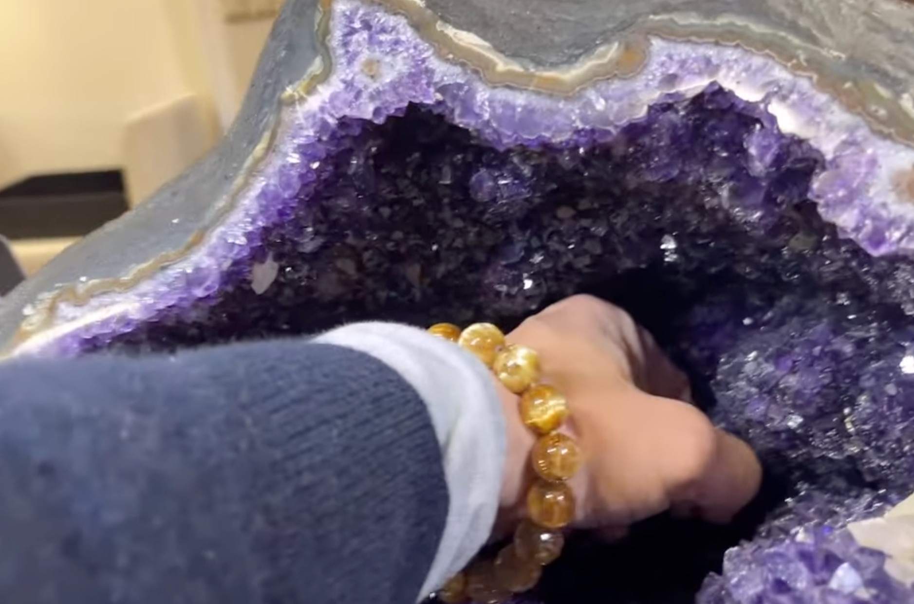 手が完全に入る深さを持つ22kgの巨大ブラジル産アメジストドームと、
