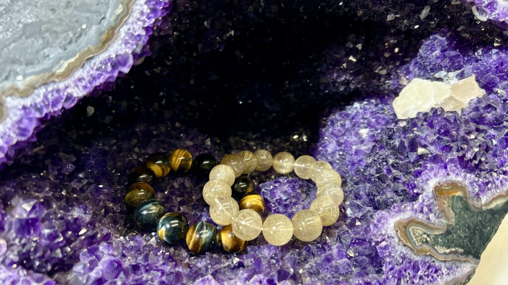 この結晶化の過程で、鉄イオン(Fe³⁺)が取り込まれ、さらに自然放射線の影響を受けることで、透明な水晶が紫色のアメジストへと変化します。