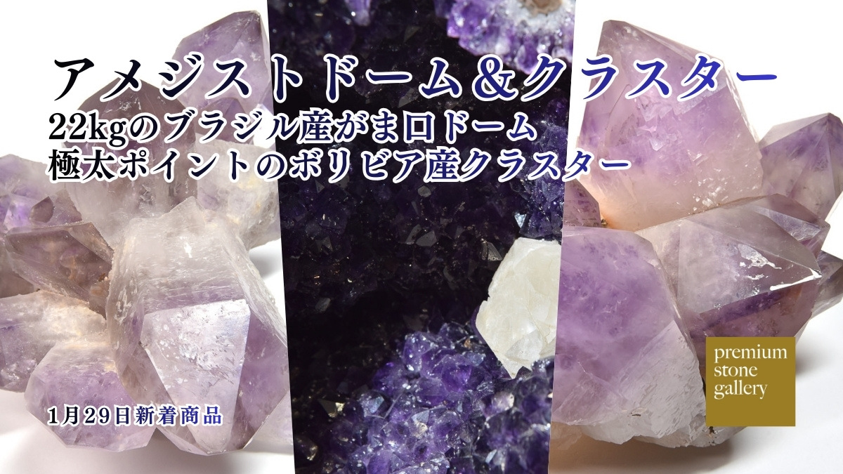 これまで扱ったことのないボリビア産の極太アメジストクラスター。