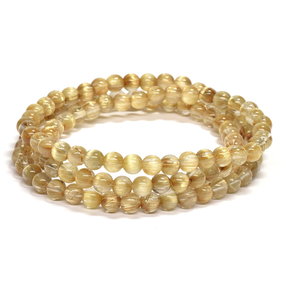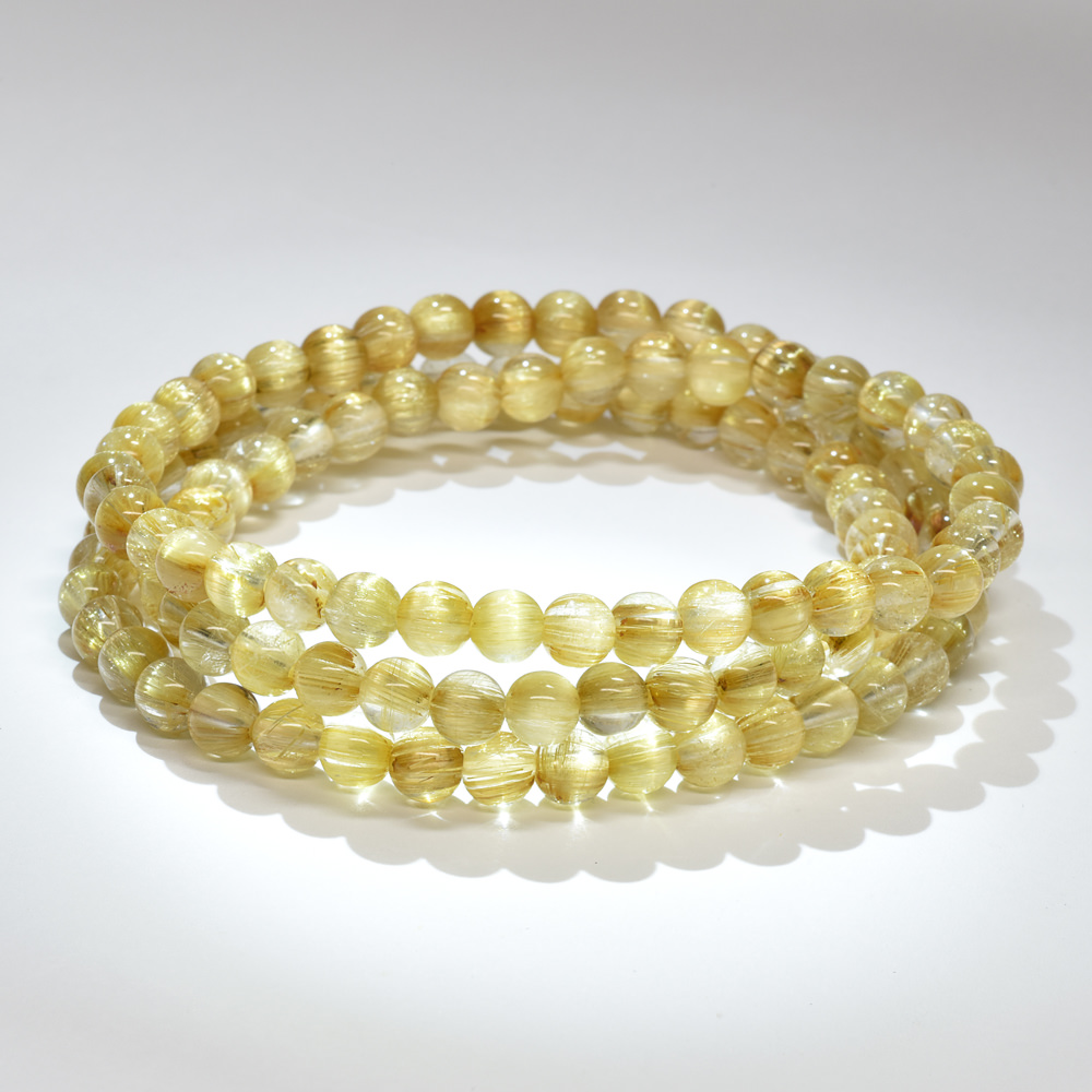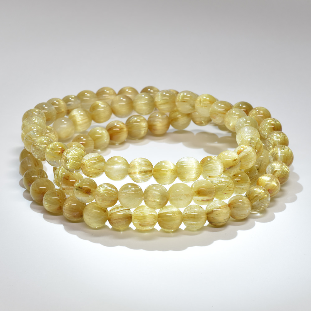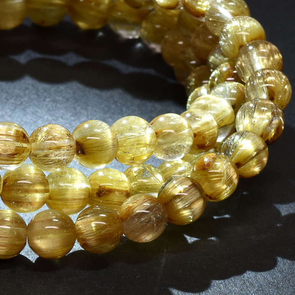 眩い黄金の光を放つゴールドルチルクォーツ三連ブレスレットです。