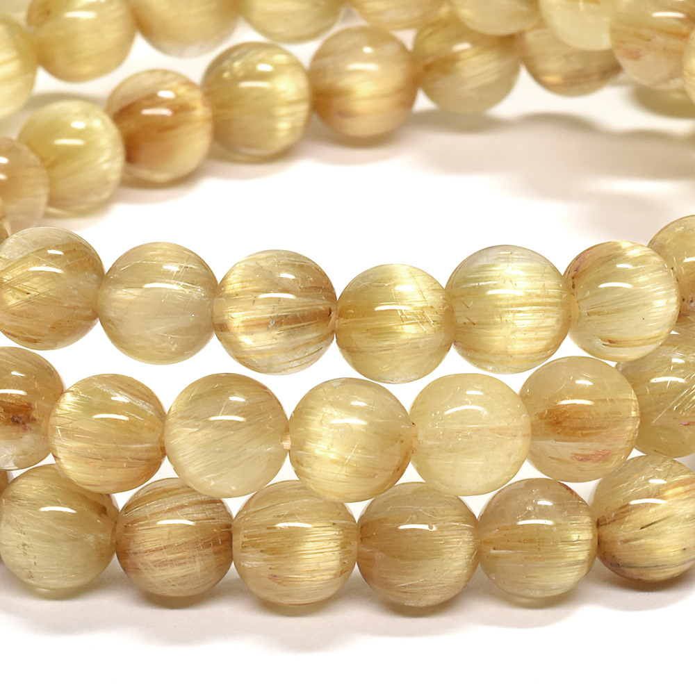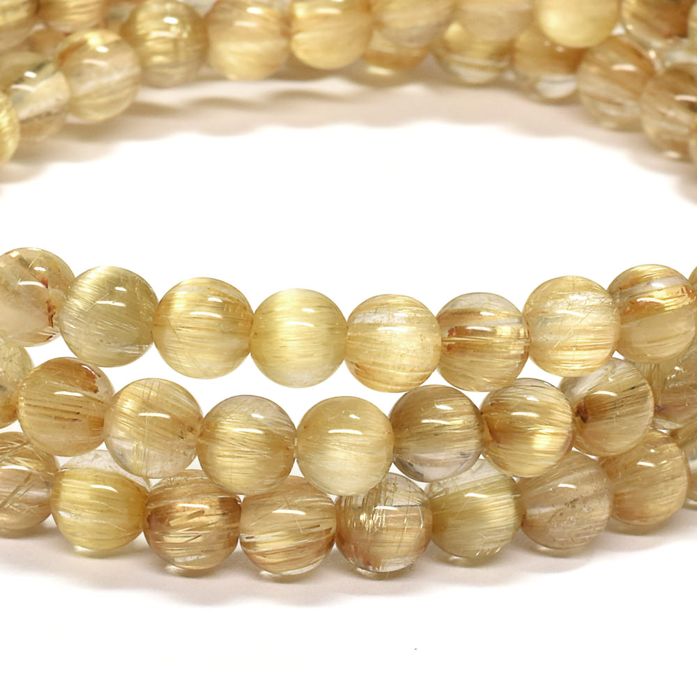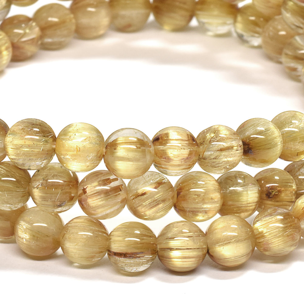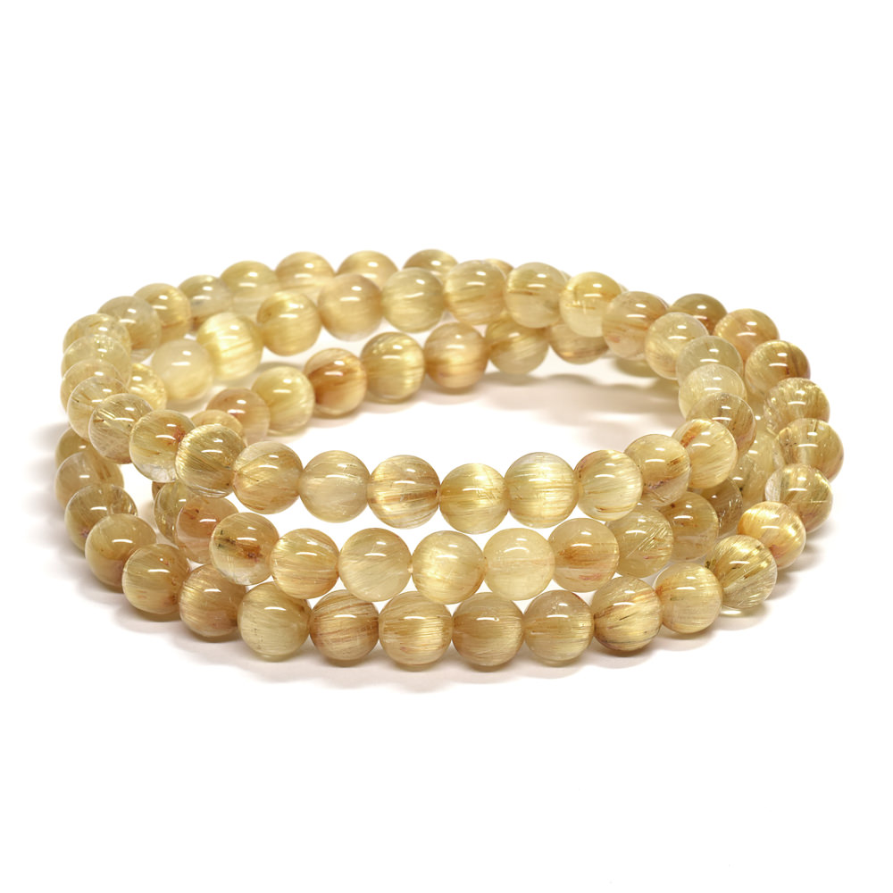 眩い黄金の光を放つゴールドルチルクォーツ三連ブレスレットです。