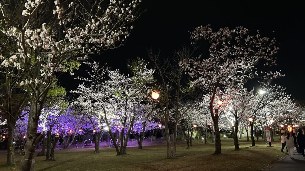 土曜の夜は神栖市の神之池緑地公園で夜桜見物。毎年恒例の「桜×ファイアークォーツ」撮影、今回は夜桜バージョン「夜桜ファイアー」の写真をパチリ。