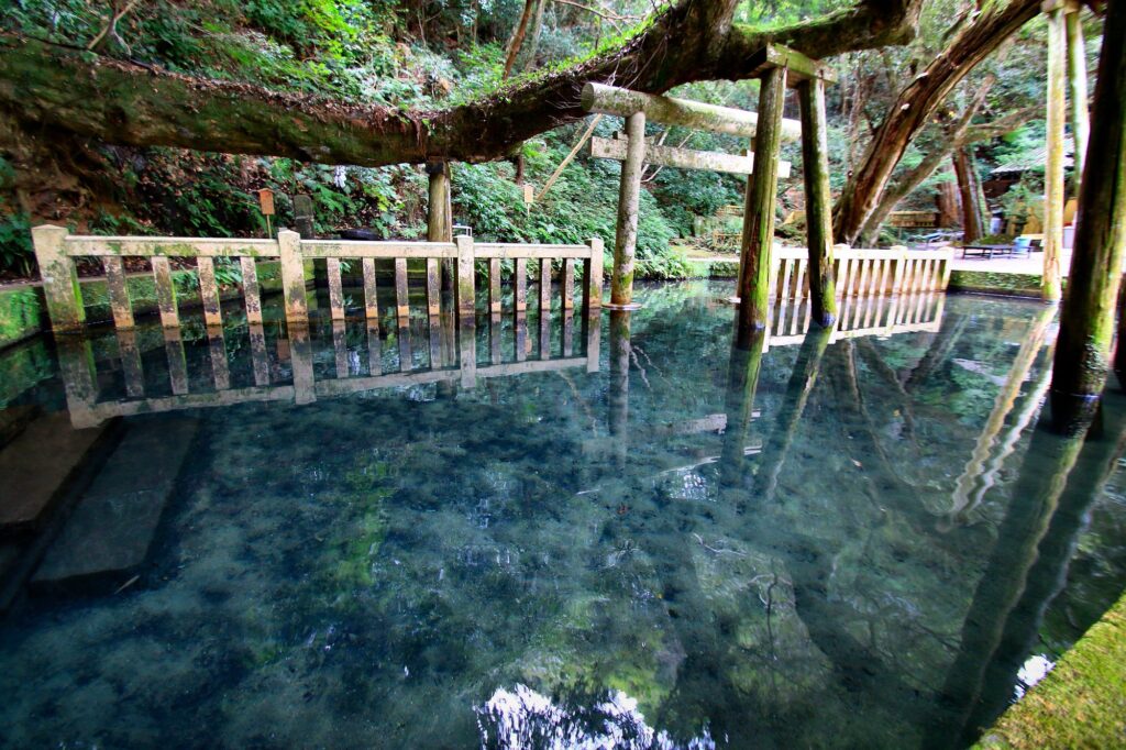 御手洗池は、1日に40万リットルもの清水が湧き出る泉で、水がとてもキレイです。