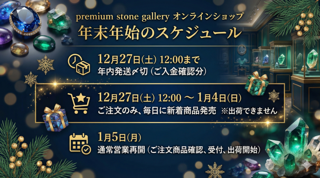 12月27日12:00以降の入金分は 1月5日(月)からの発送になります。