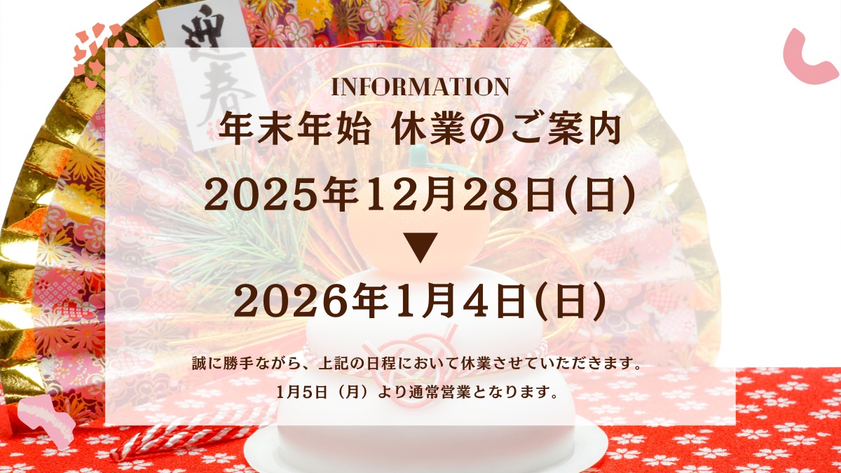 | 12月28日(日) ↓ 1月4日(日) | 年末年始休業 | 年末年始休業 | ご注文のみ | ー |