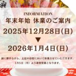 年末年始は12月28日(日)より1月4日(日)まで