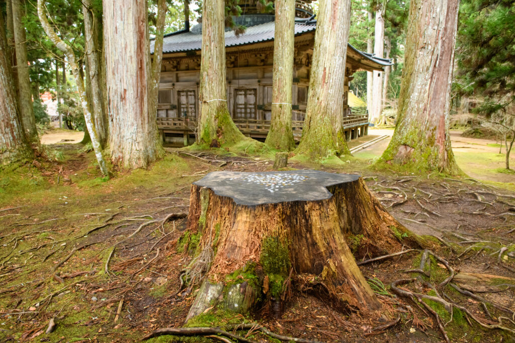 そして2015年、高野山開創1200年という節目の年に、ついに中門が復活。再建にあたっては、高野山の敷地内で霊木として保護・育成されてきた檜が使用されました。外から材料を調達するのではなく、聖地の中で育てた木を聖地の建物に使う——その考え方は、式年遷宮のたびに境内の木を用いる伊勢神宮と通じるものがあります。