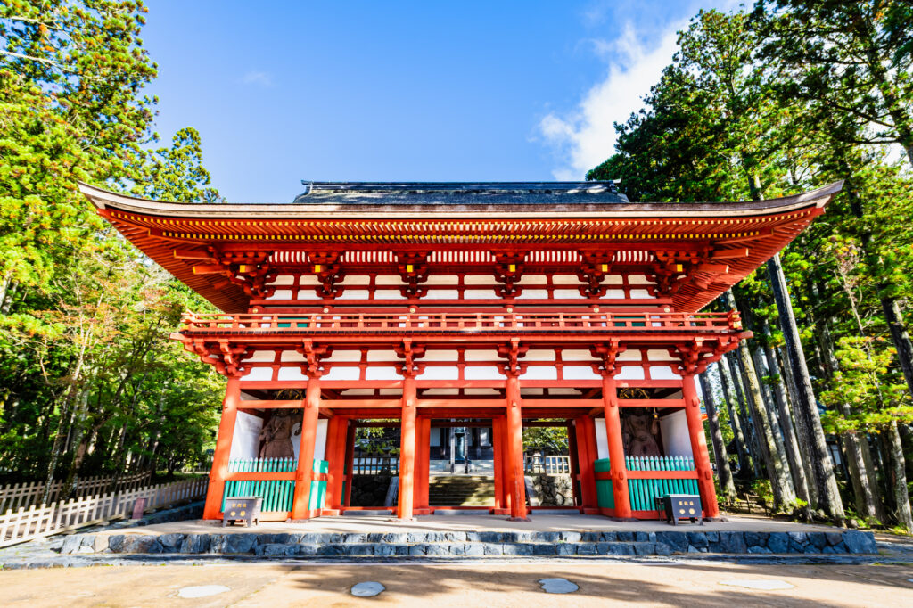 高野山の中心地、壇上伽藍にそびえる「中門」。弘法大師空海が最初に着手したとされる、高野山の歴史においても特別な意味を持つ門です。