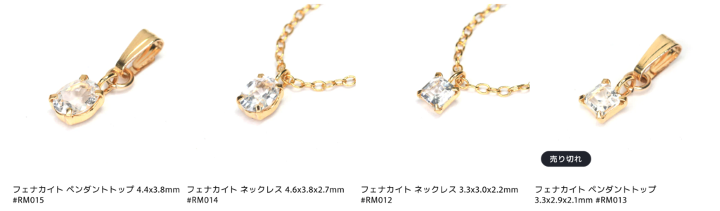 本日は、フェナカイトのペンダントトップとネックレスをご用意しました。