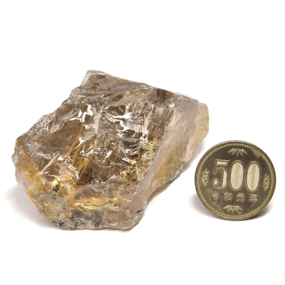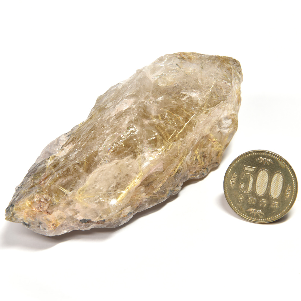いかがでしょうか?取り出したままの粗さはありますが、透明度が高く非常に高品質なルチルクォーツであることがわかります。磨いてタンブルや丸玉を作ると美しい品になると思いますよ。輝きが保証されている原石ですね。