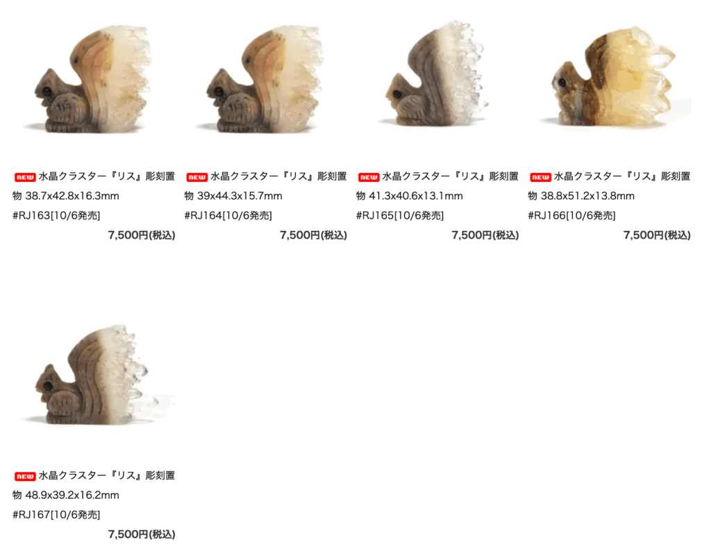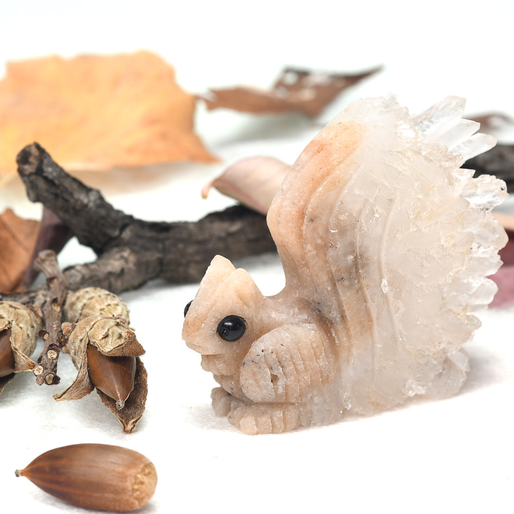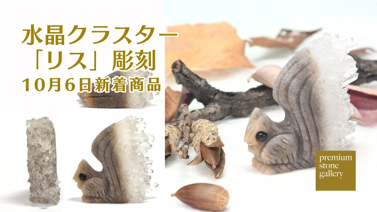 本日の新着は、水晶クラスターを使ったリスの彫刻シリーズです。
