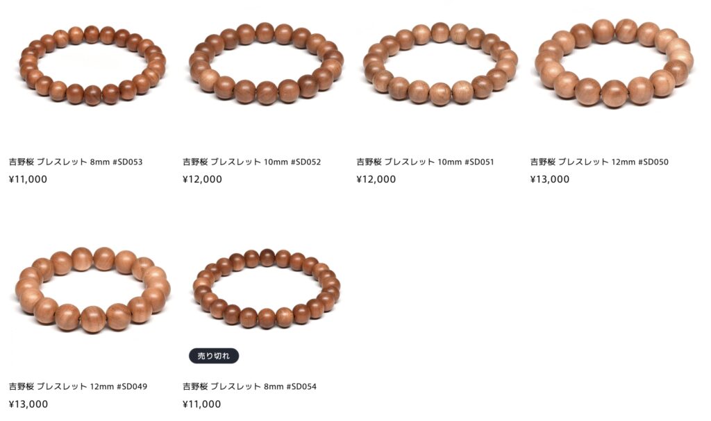 そんな吉野の桜の木を使ったブレスレットです。
