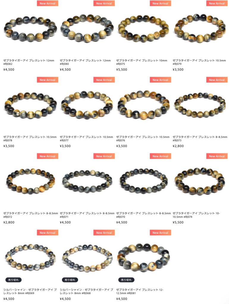 今回の新着は、ゼブラタイガーアイブレスレット全15本。
